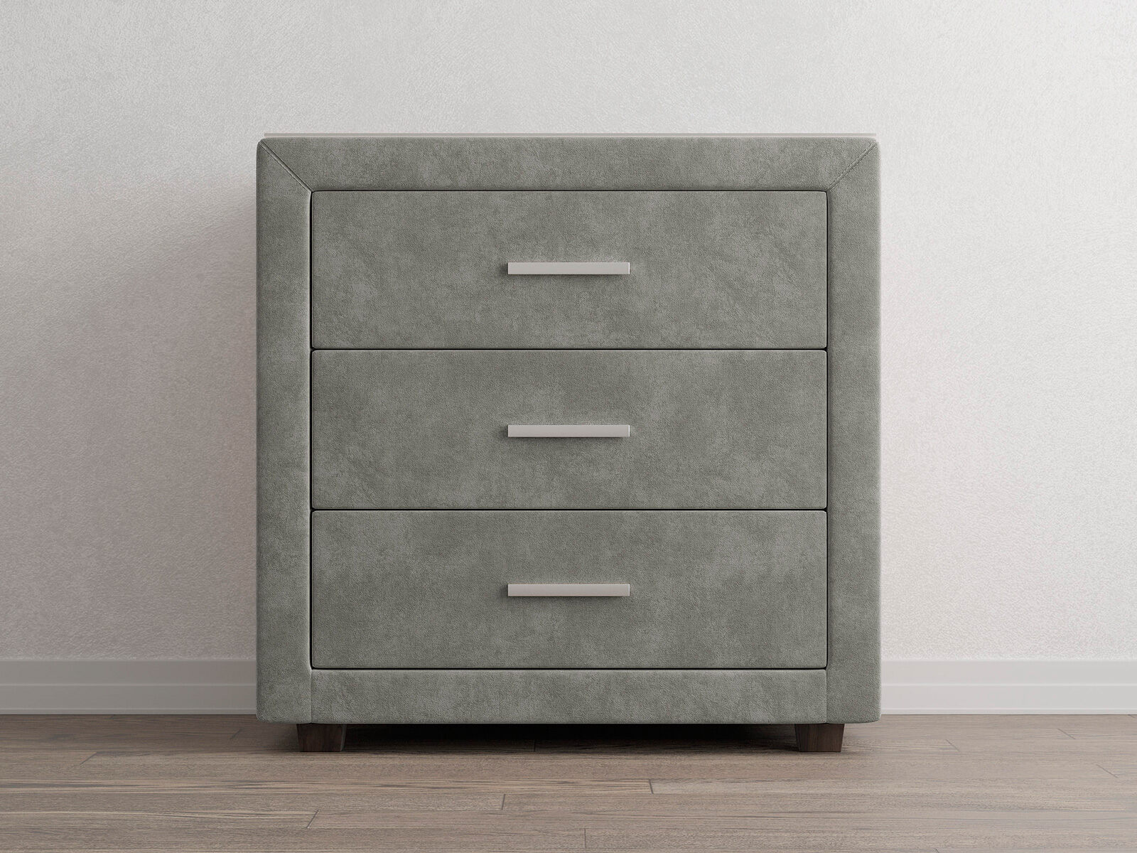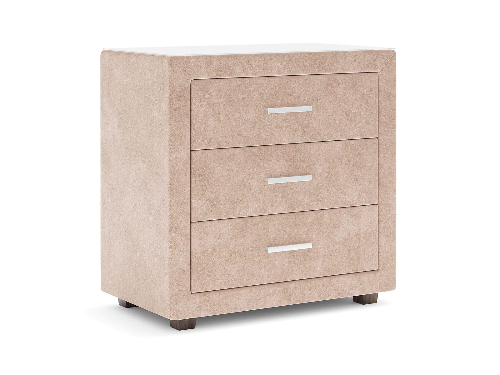 Элегантный комод отличается стильным дизайном и повышенным удобством. Три выдвижных ящика оснащены надёжными направляющими, обеспечивающими лёгкое открытие. Фасад ящиков и стенки комода покрыты обивочным материалом.