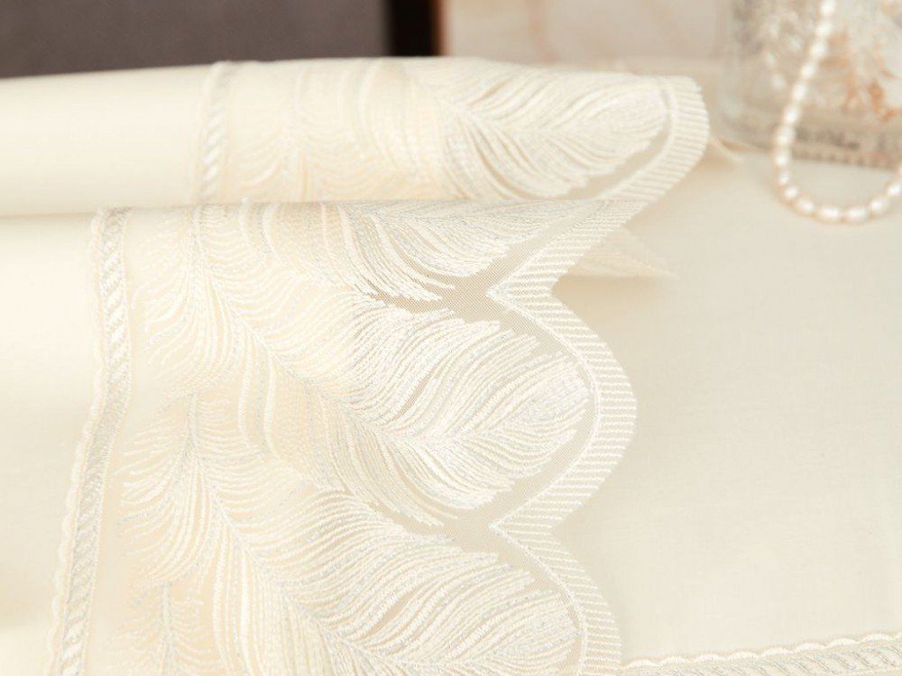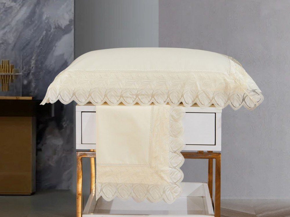 Очарование и красота этого комплекта - в гармонии классического сливочного цвета с роскошным кружевом, в котором с истинно итальянскими традициями переплетаются элегантность узора и воздушность основы, ажурность исполнения и законченный романтический образ, способный очаровать вас с первого взгляда.