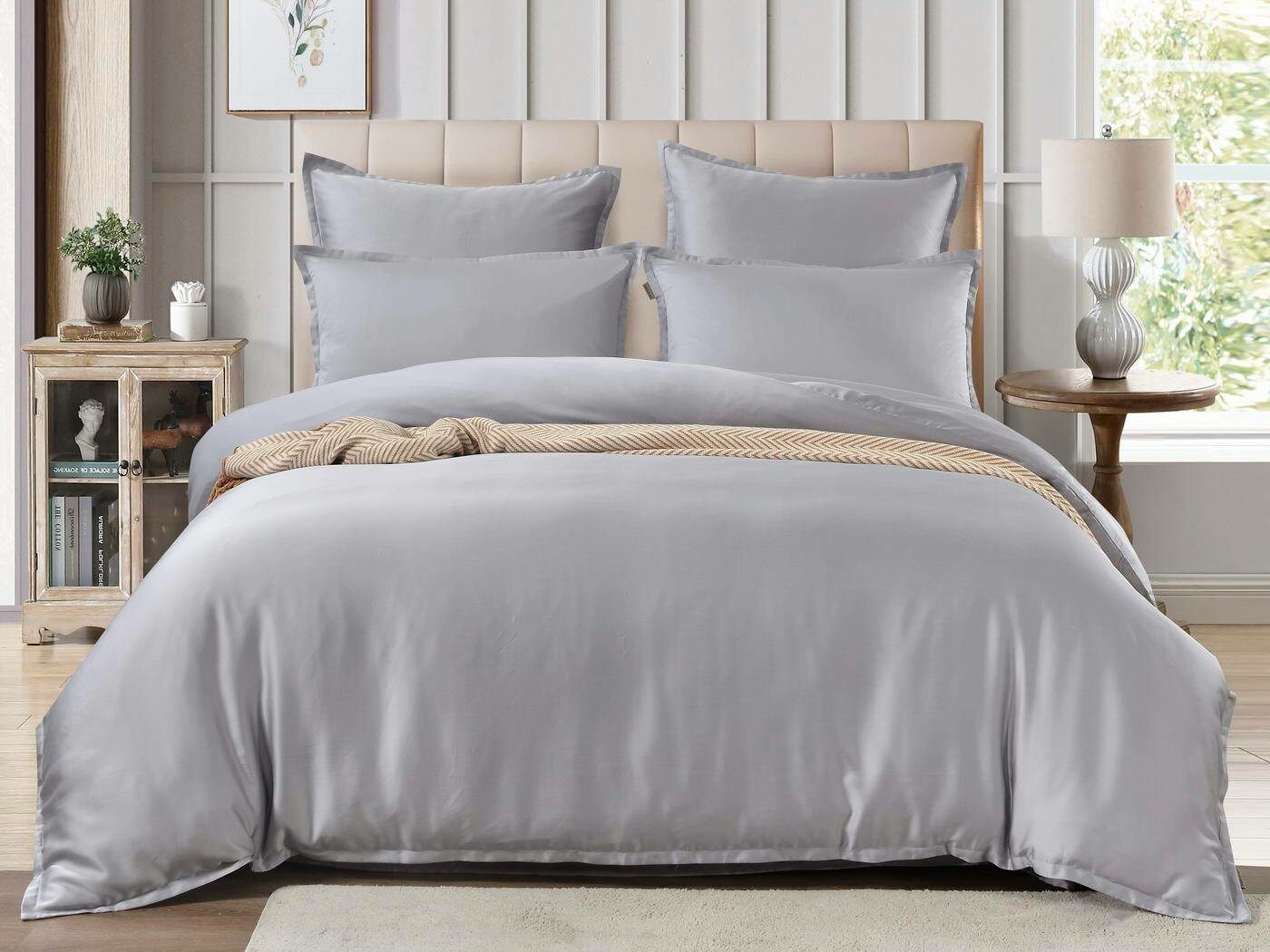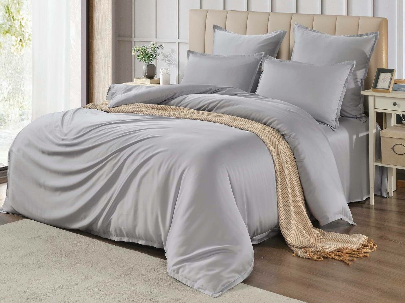 Комплекты постельного белья Ансель: нежность и комфорт каждую ночь Ищете постельное бельё, которое подарит вам незабываемый комфорт и уют? Тогда комплекты постельного белья Ансель из тенселя — идеальный выбор! Тенсель — это натуральная ткань, изготовленная из волокон эвкалипта. Она обладает рядом преимуществ перед хлопковыми тканями: более нежная, шелковистая и приятная на ощупь. Комплекты постельного белья Ансель включают в себя наволочки, простыню и пододеяльник. Они выполнены из 100% тенселя, что гарантирует высокое качество и долговечность. Одно из главных преимуществ тенселя — его способность пропускать воздух и хорошо впитывать и испарять влагу. Это обеспечивает оптимальный микроклимат во время сна, предотвращает появление неприятных запахов и бактерий. Ещё одно важное свойство тенселя — антибактериальный эффект. Это значит, что постельное бельё Ансель не вызывает аллергии и подходит для людей с чувствительной кожей. Уникальное свойство тенселя — климат-контроль. При высокой температуре в помещении ткань обладает лёгким и приятным охлаждающим эффектом, а при низкой создаёт ощущение тепла и комфорта. Комплекты постельного белья Ансель — это идеальный выбор для тех, кто ценит комфорт, качество и натуральность. Они станут отличным дополнением к вашему интерьеру и подарят вам незабываемые ощущения во время сна.