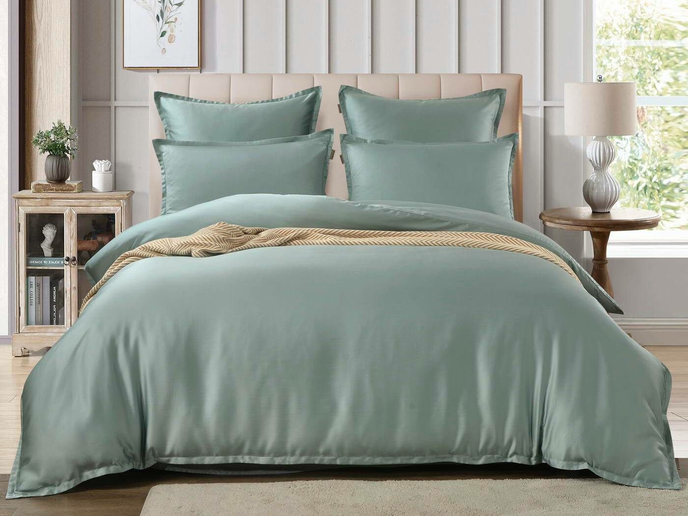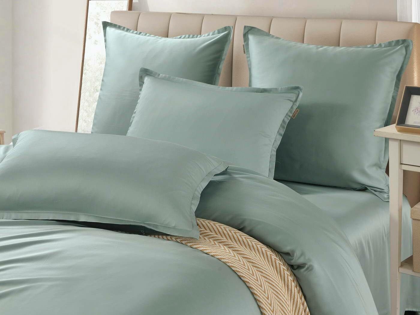 Комплекты постельного белья Ансель: нежность и комфорт каждую ночь Ищете постельное бельё, которое подарит вам незабываемый комфорт и уют? Тогда комплекты постельного белья Ансель из тенселя — идеальный выбор! Тенсель — это натуральная ткань, изготовленная из волокон эвкалипта. Она обладает рядом преимуществ перед хлопковыми тканями: более нежная, шелковистая и приятная на ощупь. Комплекты постельного белья Ансель включают в себя наволочки, простыню и пододеяльник. Они выполнены из 100% тенселя, что гарантирует высокое качество и долговечность. Одно из главных преимуществ тенселя — его способность пропускать воздух и хорошо впитывать и испарять влагу. Это обеспечивает оптимальный микроклимат во время сна, предотвращает появление неприятных запахов и бактерий. Ещё одно важное свойство тенселя — антибактериальный эффект. Это значит, что постельное бельё Ансель не вызывает аллергии и подходит для людей с чувствительной кожей. Уникальное свойство тенселя — климат-контроль. При высокой температуре в помещении ткань обладает лёгким и приятным охлаждающим эффектом, а при низкой создаёт ощущение тепла и комфорта. Комплекты постельного белья Ансель — это идеальный выбор для тех, кто ценит комфорт, качество и натуральность. Они станут отличным дополнением к вашему интерьеру и подарят вам незабываемые ощущения во время сна.