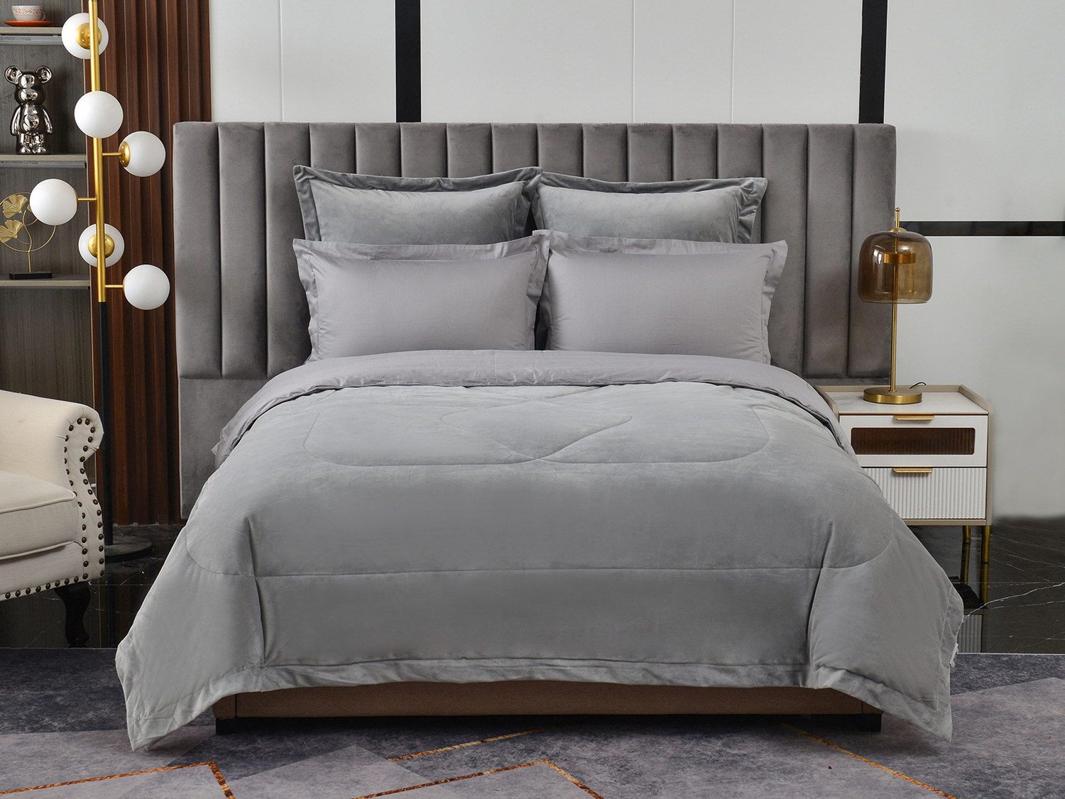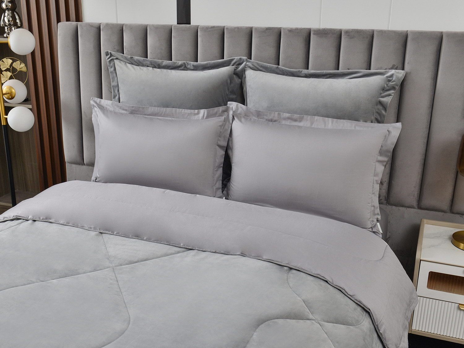 Изготовленный из качественной вискозы и мягкого хлопка трендовых цветов, комплект создаёт приятное ощущение на коже. Его экологичное наполнение из 100% эковолокна обеспечивает гипоаллергенные свойства, подарив вам спокойные и уютные ночи.