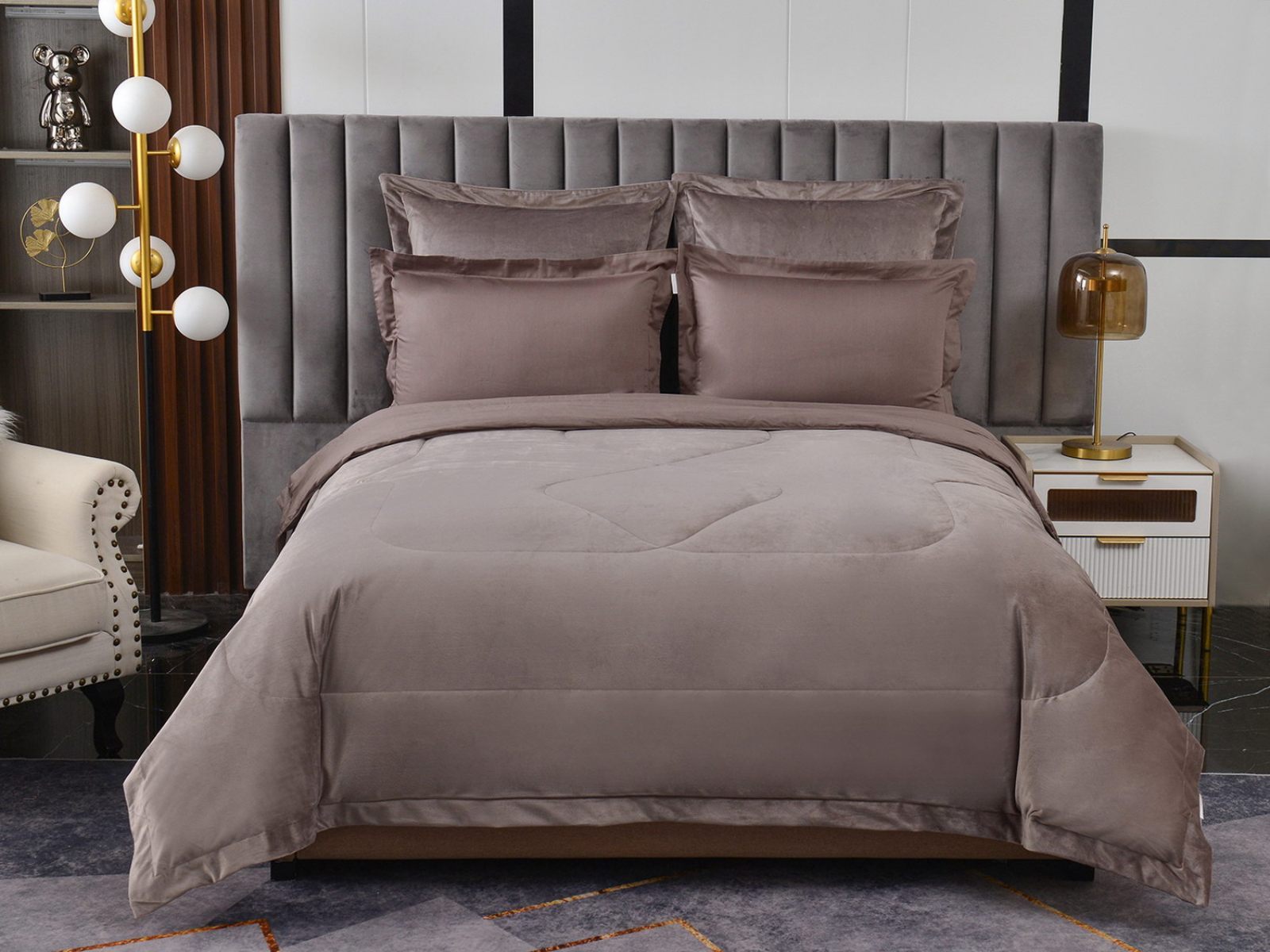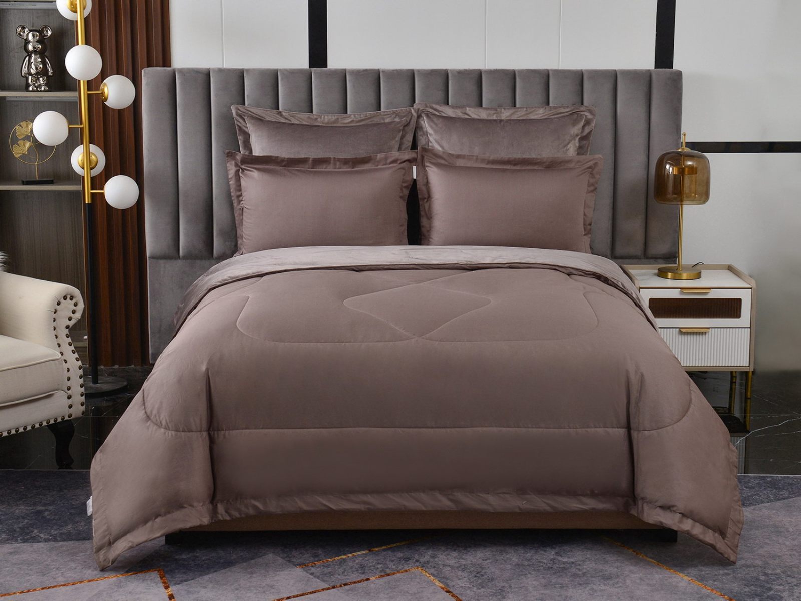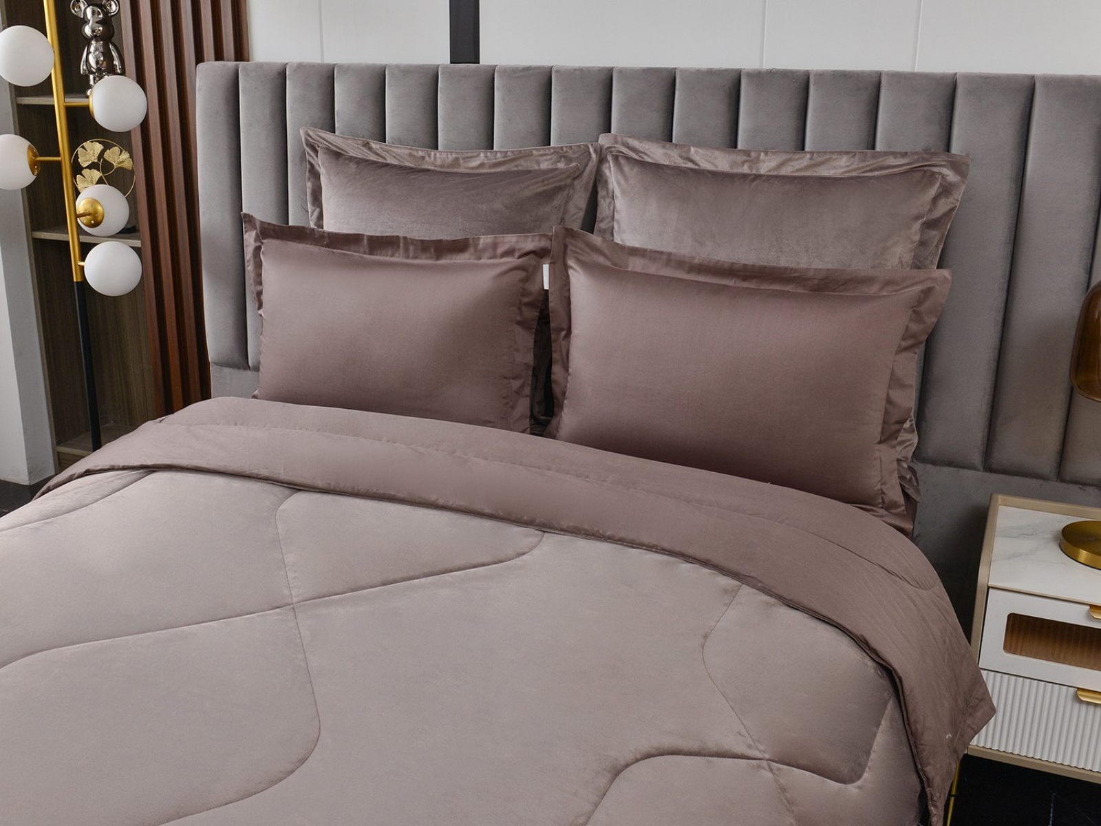 Изготовленный из качественной вискозы и мягкого хлопка трендовых цветов, комплект создаёт приятное ощущение на коже. Его экологичное наполнение из 100% эковолокна обеспечивает гипоаллергенные свойства, подарив вам спокойные и уютные ночи.