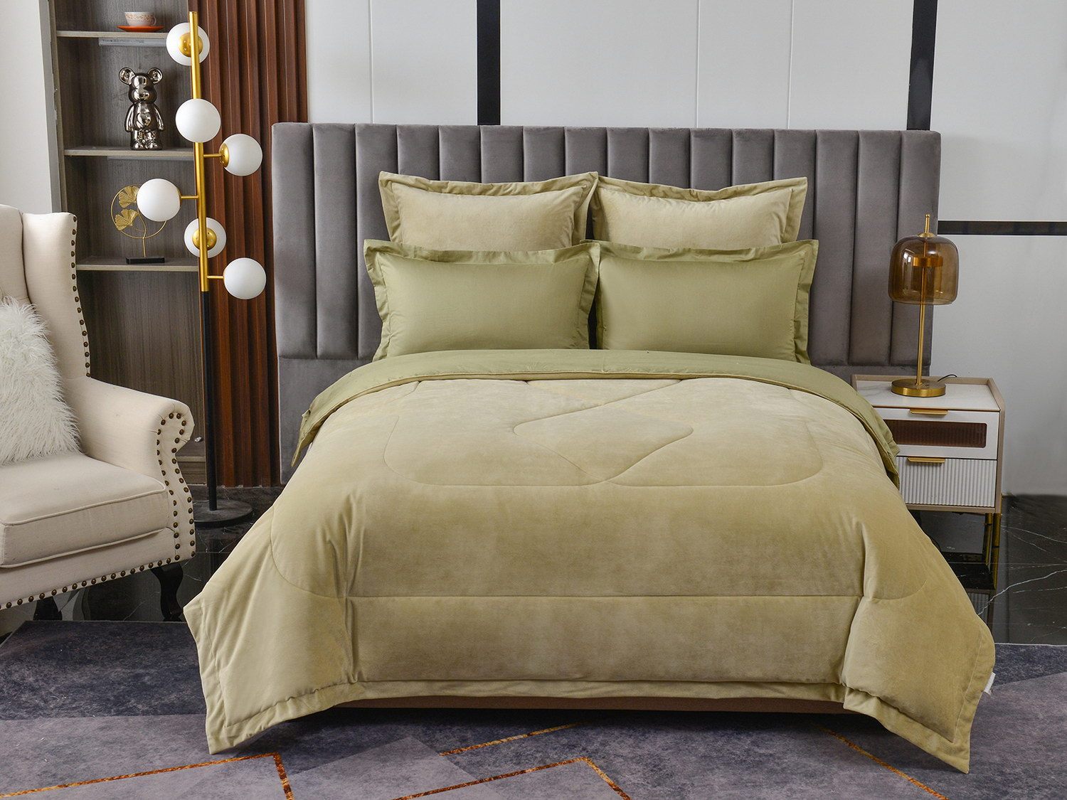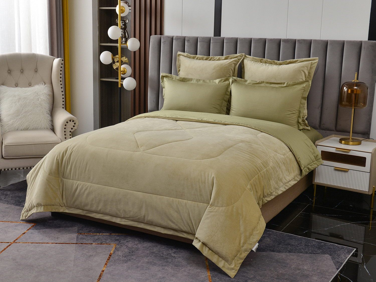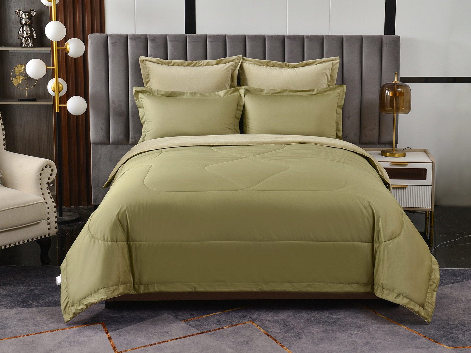 Изготовленный из качественной вискозы и мягкого хлопка трендовых цветов, комплект создаёт приятное ощущение на коже. Его экологичное наполнение из 100% эковолокна обеспечивает гипоаллергенные свойства, подарив вам спокойные и уютные ночи.