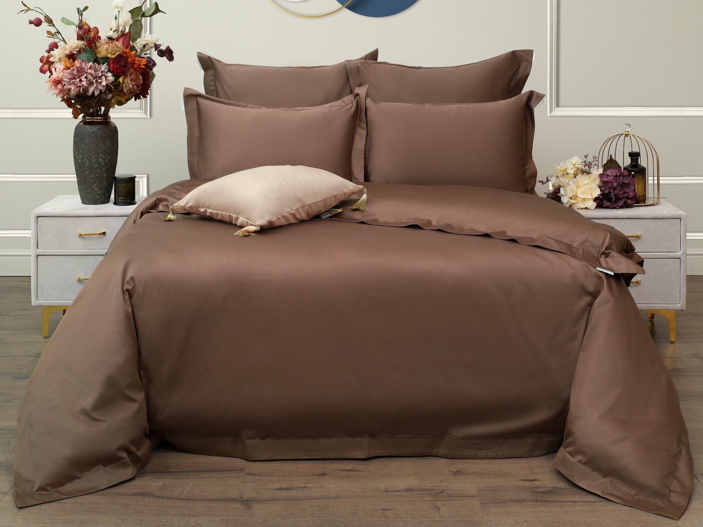 Натуральный состав из 100%-го хлопка обеспечивает гипоаллергенные свойства материала, он охлаждает в жаркую погоду и согревает в холодное время года. Мако-сатин плотностью 300ТС- является тканью класса люкс.