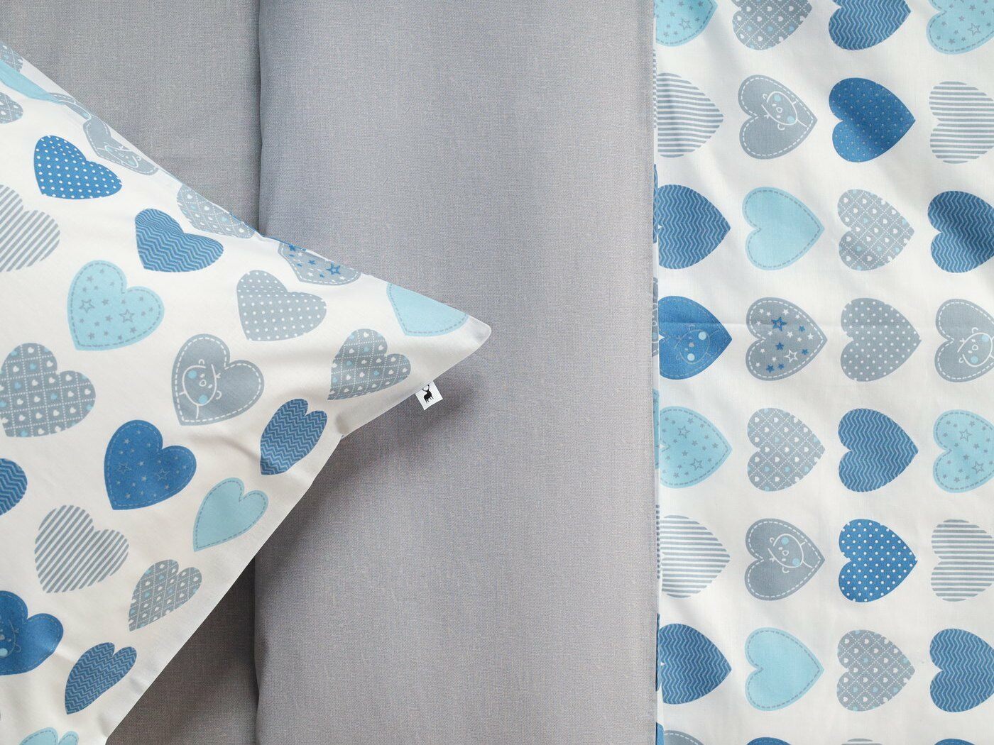 Пододеяльник –двусторонний: верх из ткани А (принтованная ткань), обратка из ткани В (однотонная рогожка), с потайной молнией.