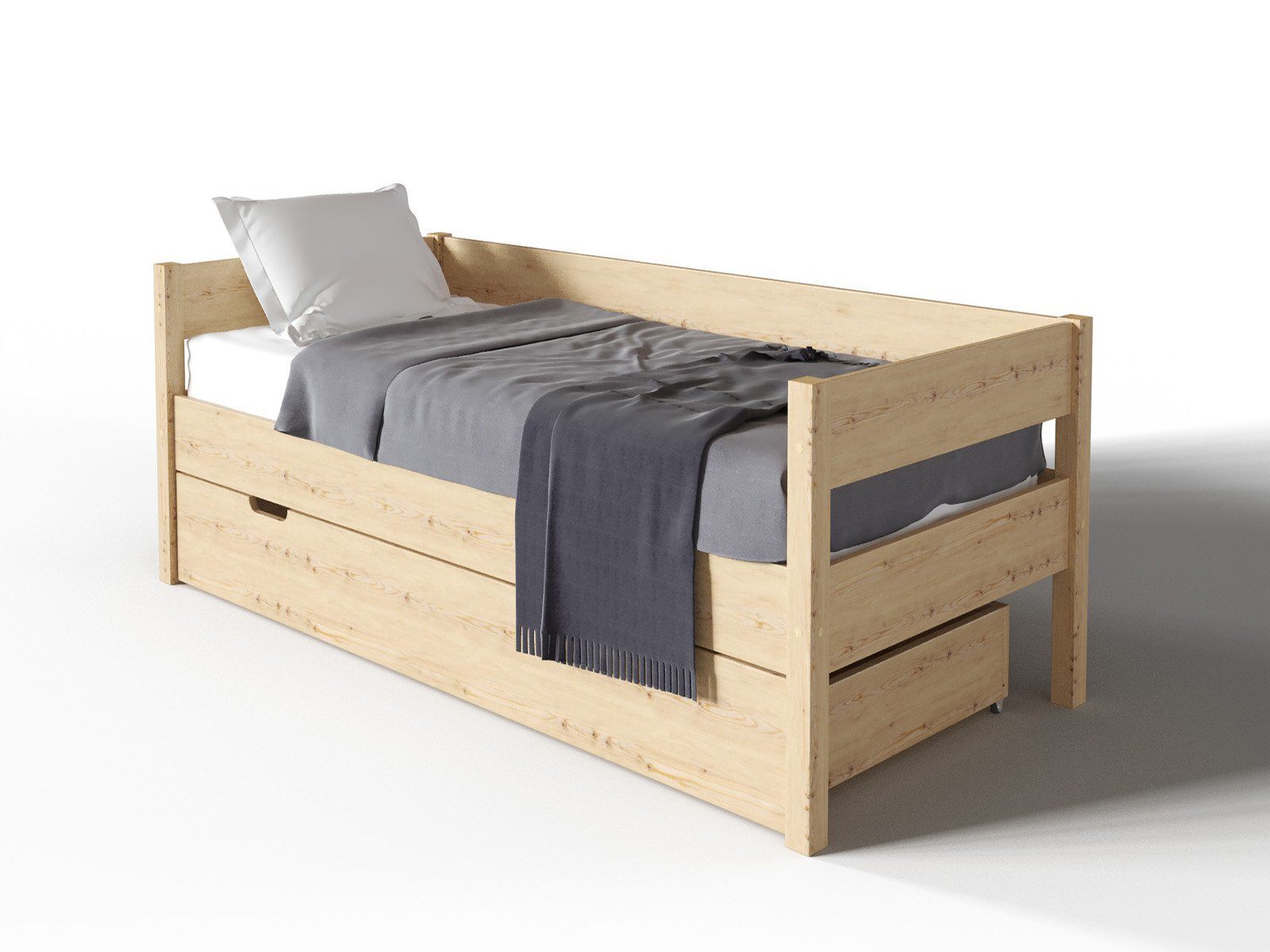 Компактная кровать «Алекса» легко впишется в любой современный интерьер детской комнаты или спальни. Ортопедическое основание кровати позволяет сформировать идеальное спальное место, подобрав матрас необходимого уровня жёсткости. Под основанием кровати расположен вместительный ящик для постельных принадлежностей.
