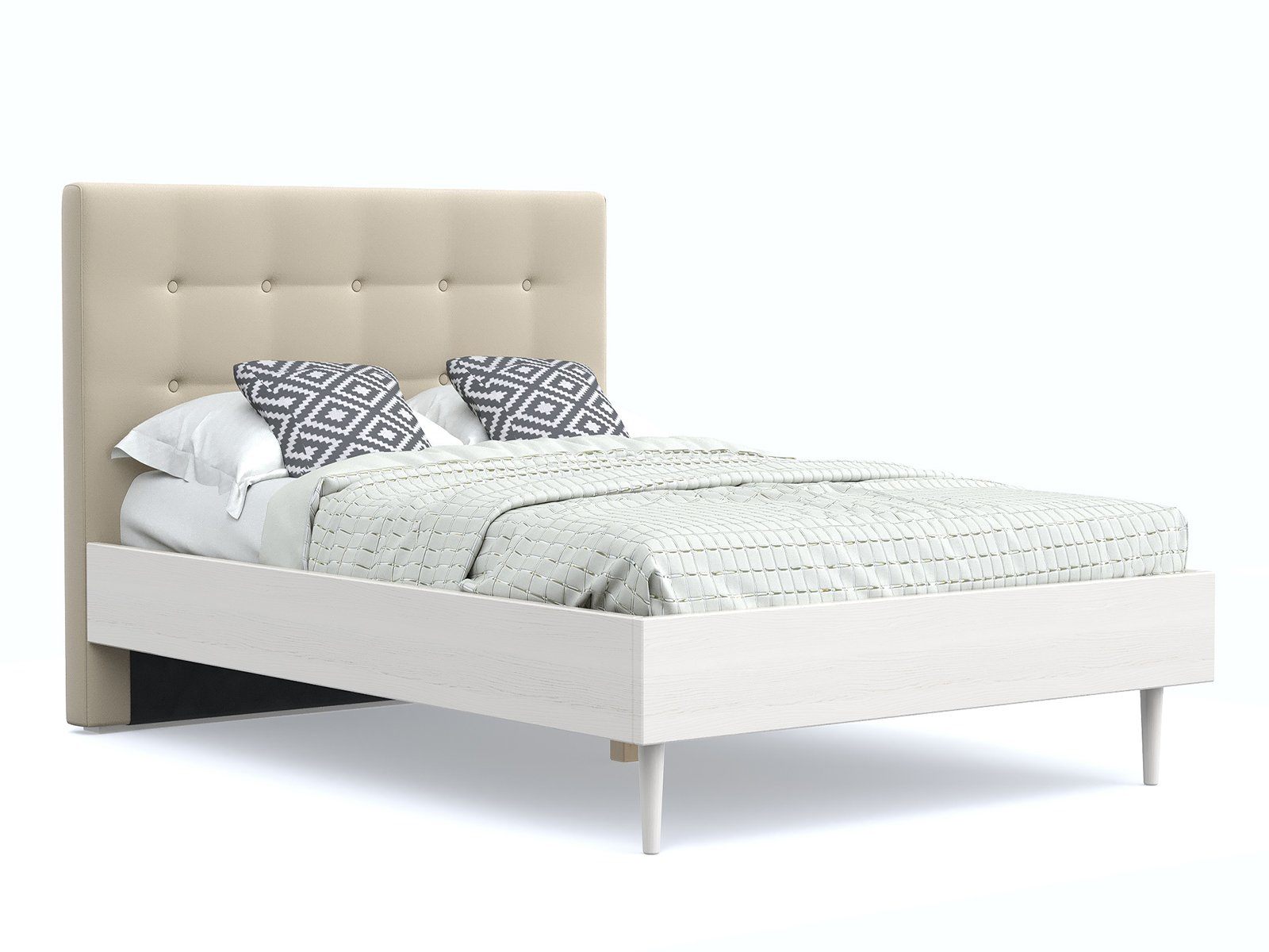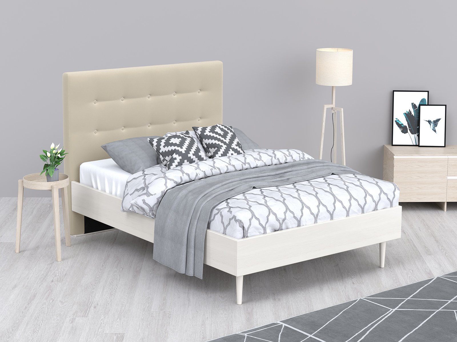 Кровать «Альмена» станет оригинальным дополнением любой современной спальни благодаря своему минималистичному дизайну. Модель будет прекрасно сочетаться с окружением в стиле лофт, сканди или даже прованс. Декоративная утяжка на спинке предохраняет обивку от чрезмерного растяжения. Высокие деревянные ножки не только придают кровати визуальной легкости, но и облегчают уборку, в том числе с помощью робота-пылесоса. Каркас из массива сосны отличается высокой прочностью и длительным сроком эксплуатации.