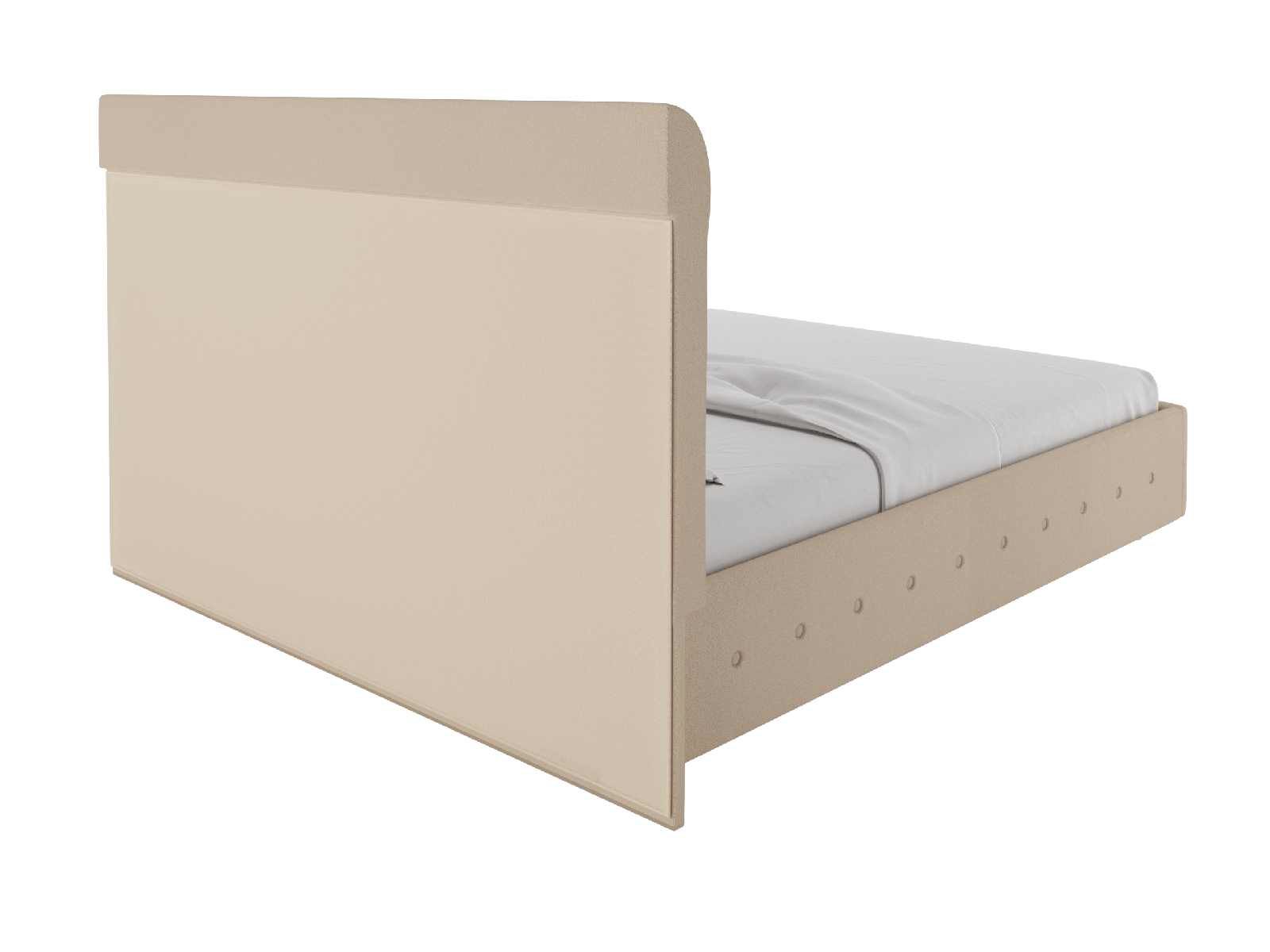 Для обивки кровати используется экокожа, которая легко чистится и максимально напоминает натуральную кожу. При стандартной комплектации обратная сторона изголовья выполняется из технического материала. Однако по желанию его можно заменить на основную обивку кровати.