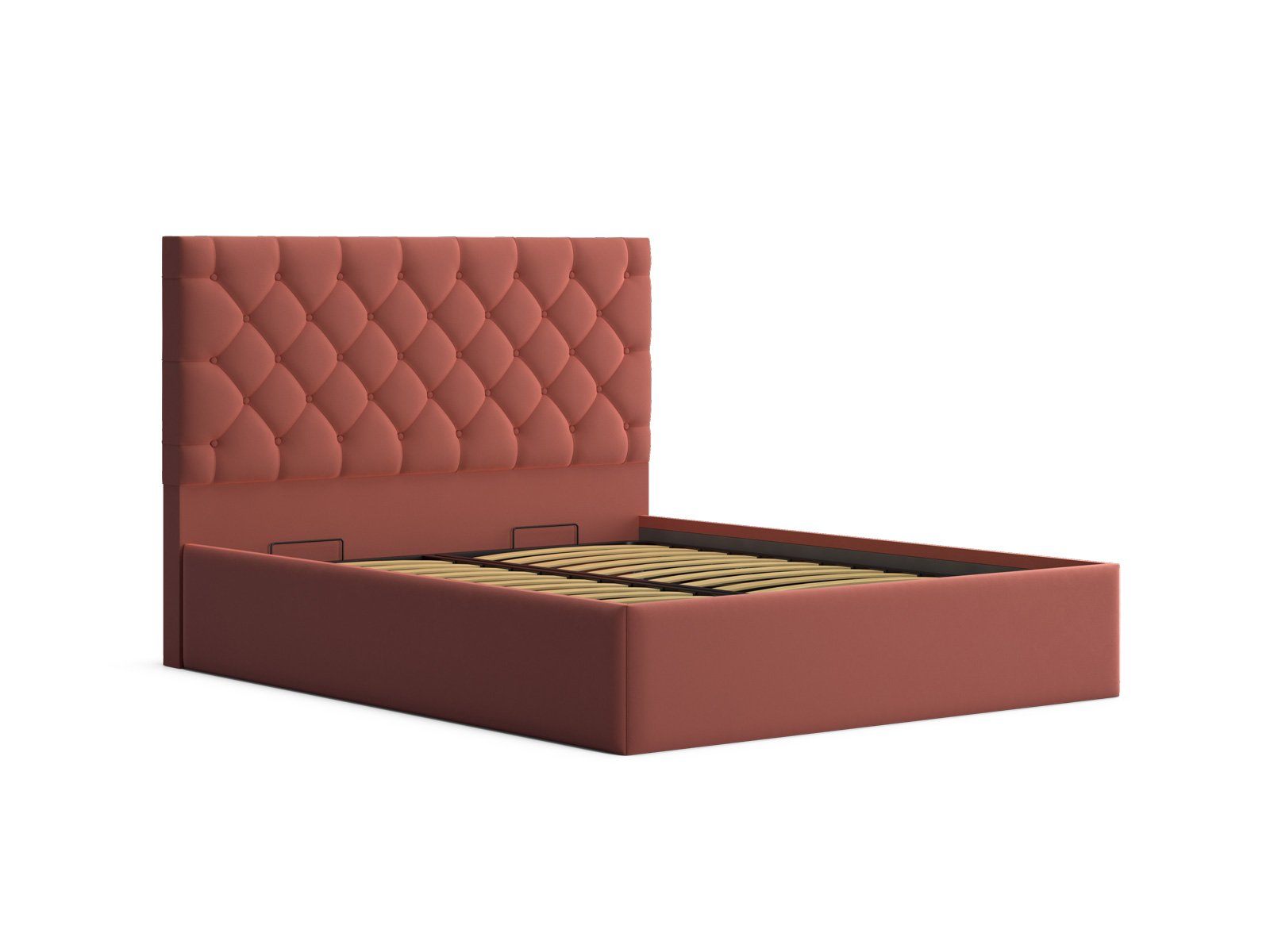 Мягкая кровать с обивкой из велюра.