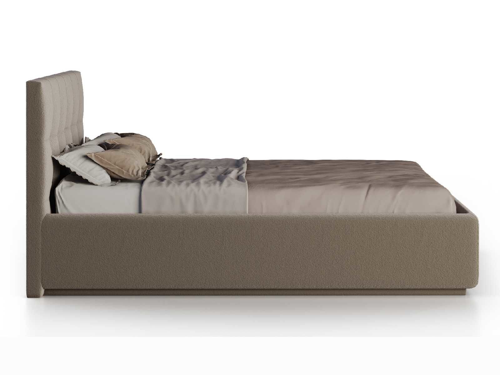 Кровать укомплектована IQ с подъемным механизмом и ящиком для белья без дна (дополнительная платная опция - дно к ящику IQ из HDF (ХДФ). Каркас кровати на цоколе, декоративный чехол на цоколе съёмный. Глубина ящика для белья - 30 см, без ограничения нагрузки на ящик.