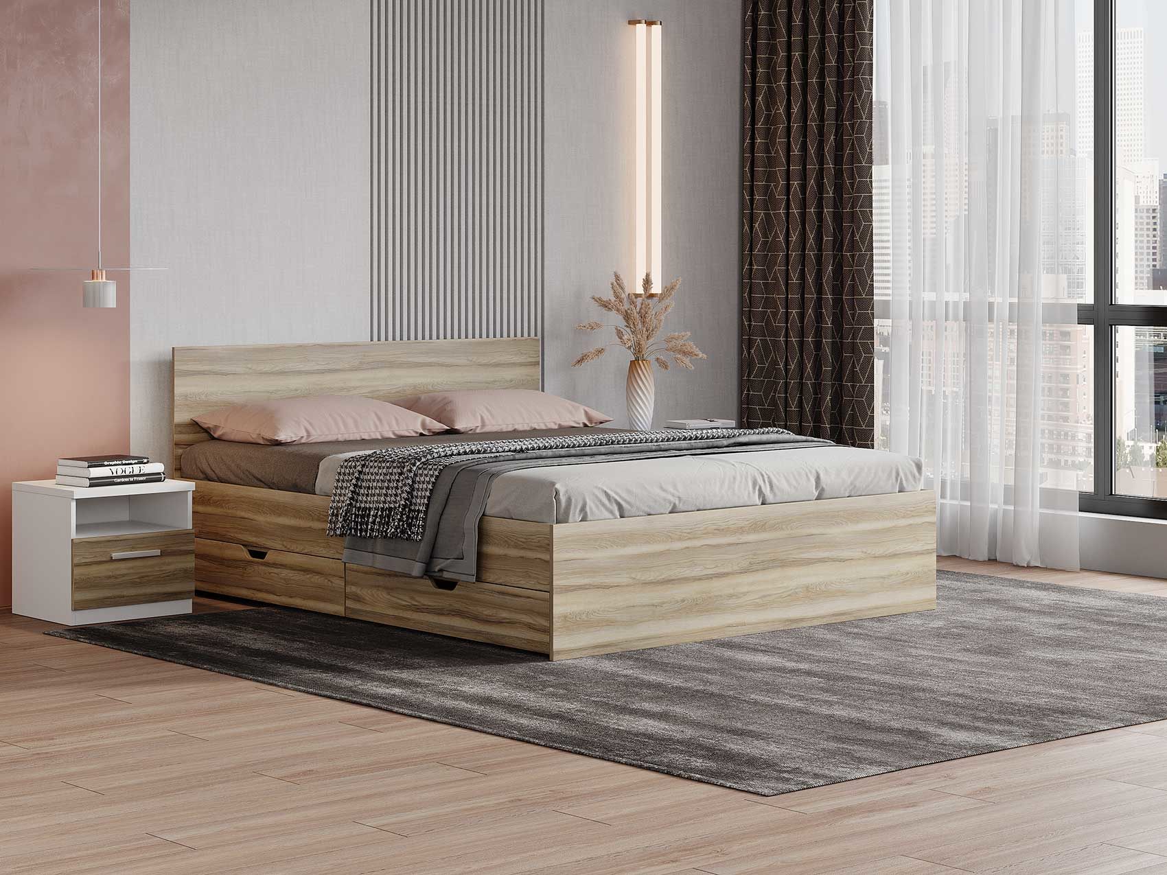 Кровать Mariana выполнена в стиле минимализм. Лаконичный дизайн, ровные линии, сдержанные формы придутся по вкусу ценителям современного стиля. Кровать имеет минимальные внешние габариты, благодаря чему прекрасно впишется в небольшую спальню. В качестве основания используется настил из ЛДСП. Система усиленных средней и центральной царг позволяют выдерживать высокие нагрузки. Большое расстояние от пола до царги облегчает уборку под кроватью, делает доступной использование робота-пылесоса. Кровать можно укомплектовать ящиками для хранения вещей (приобретаются отдельно).