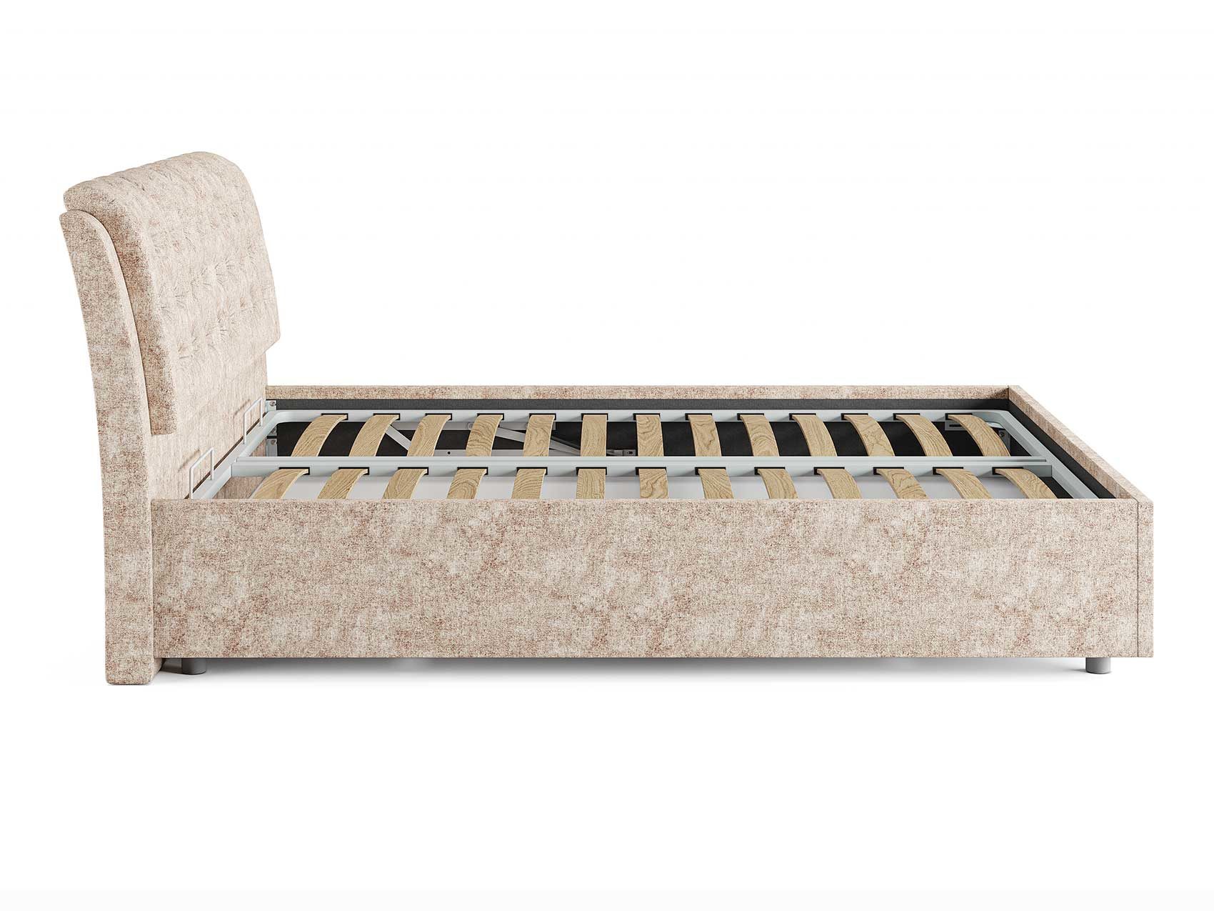 Кровать комплектуется металлическим основанием и подъемным механизмом со вместительным бельевым ящиком. Дно бельевого ящика легко сдвигается для обеспечения уборки под кроватью.
