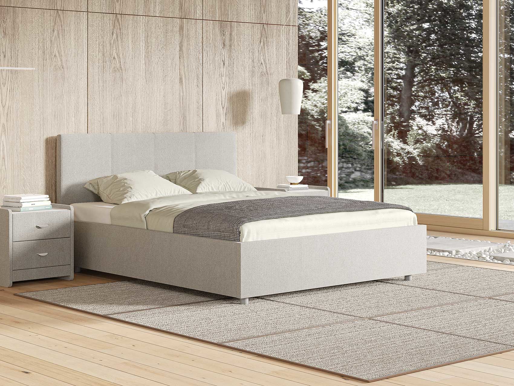 Кровать комплектуется металлическим основанием и подъемным механизмом со вместительным бельевым ящиком. Дно бельевого ящика легко сдвигается для обеспечения уборки под кроватью.