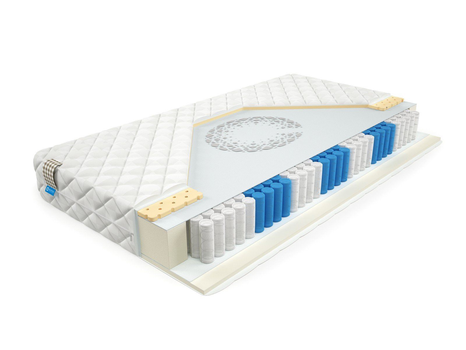 Матрас BioCrystal Duet - недорогой пружинный матрас с латексом. Матрас c ортопедическим эффектом на основе семи-зонного пружинного долговечного блока независимых пружин SIlverSpringPocket 7 zone. Данный блок насчитывает 580 металлических пружин на одно спальное место, это оптимальное количество пружин для бюджетного матраса. 7 зональный пружинный блок SSP 580& значительно прочнее обычного блока независимых пружин, и имеет большее количество витков, что, в свою очередь, лучше сказывается на упругости матраса и качестве сна. Матрас насчитывает семь зон жесткости и правильно повторяет изгибы позвоночника во время сна или отдыха. Комфорт матрасу придают 2 сантиметра натурального латекса c 1 стороны, это сторона матраса будет более упругой. Латекс долговечен, очень популярный среди матрасов в России, обеспечивает отличный комфорт. А с другой стороны матраса 2 см пенополиуретана. ППУ – это современный материал, очень часто его называют искусственный латекс, так как по своим характеристикам, он анатомичный и не жесткий. Пенополиуретан усиливает анатомический эффект матраса. Это оптимальный выбор для тех, кто до конца не определился с жесткостью матраса.