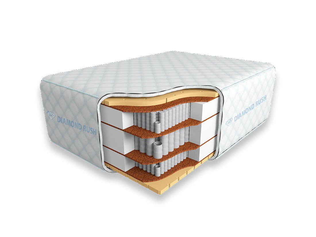 Модель Comfy Mult 50sm+ от компании Diamond Rush имеет трехуровневый пружинный механизм в своем составе, в котором каждая пружинка помещена в отдельный мешочек для наибольшего ортопедического эффекта. Конструкция изделия предполагает выдержку достаточно весомых нагрузок, составляющих не менее 120 кг на 1-м спальном месте, а его высота в 54 см позволяет использовать матрас даже без специального основания.