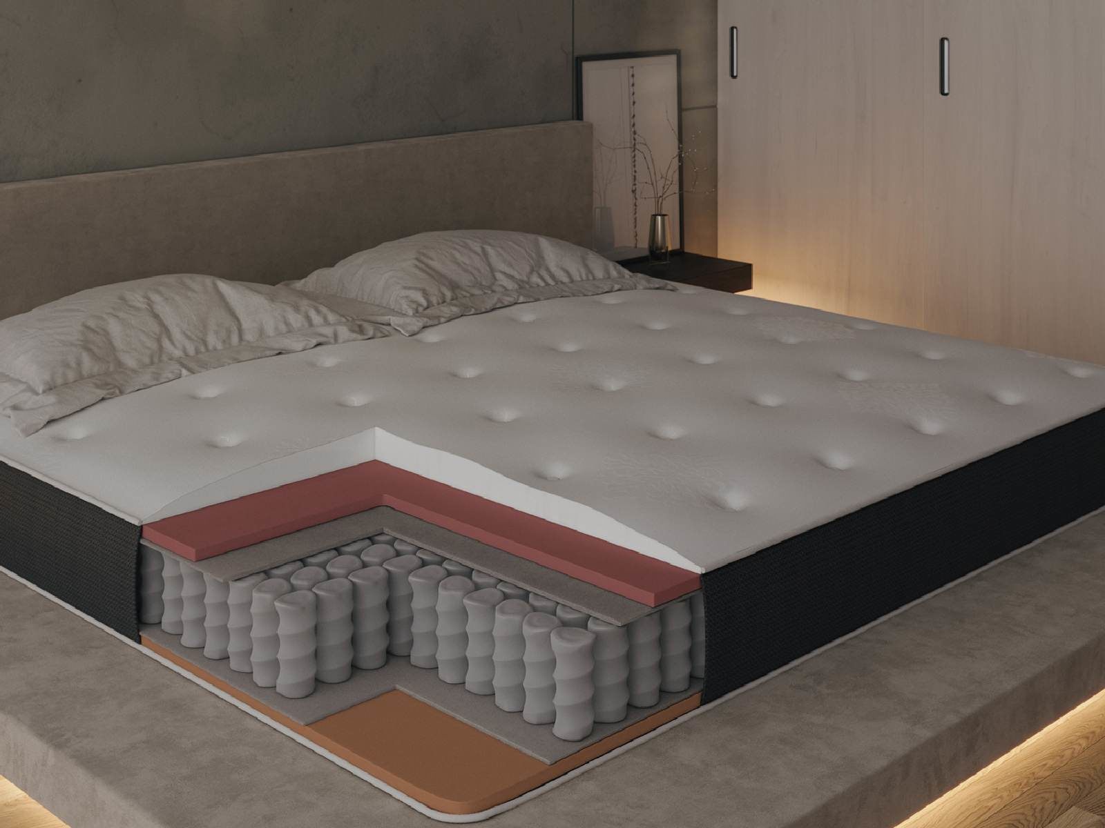 Матрас обеспечивает максимум поддержки в местах усиленного давления тела на матрас за счет инновационной плотной пены 5-ого поколения Xenuloc®.