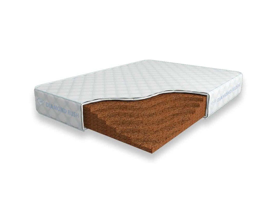 Матрас Diamond Rush Solid Cocos 18 DR является беспружинным, т.е. не имеет в своей основе пружинного блока. В его состав входят один или несколько слоев латексированной кокосовой койры. Это один из самых жестких материалов. Матрас, выполненный целиком из кокосовой койры, в меньшей степени обладает анатомическим эффектом.