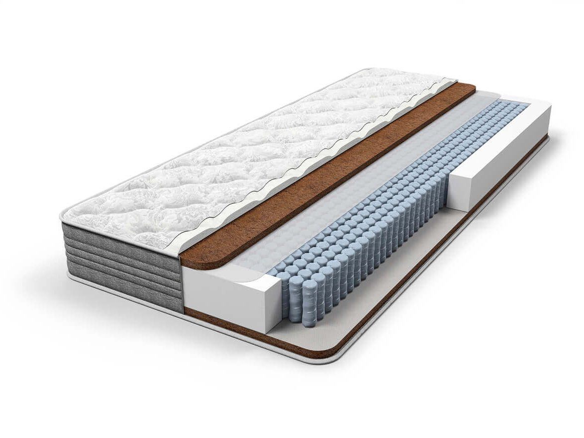 Кокосовый матрас в основе которого, блок независимых пружин MultiPocket, плотностью 1 000 пружин на спальное место. Благодаря высокой плотности пружин матрас обеспечивает качественную поддержку позвоночника, выдерживает большие нагрузки и равномерно распределяет вес по всей горизонтальной поверхности матраса. Матрас с одинаковой жесткостью сторон на основе натуральных наполнителей. Кокосовая койра с обеих сторон обеспечивает максимальный ортопедический эффект благодаря повышенной жесткости.