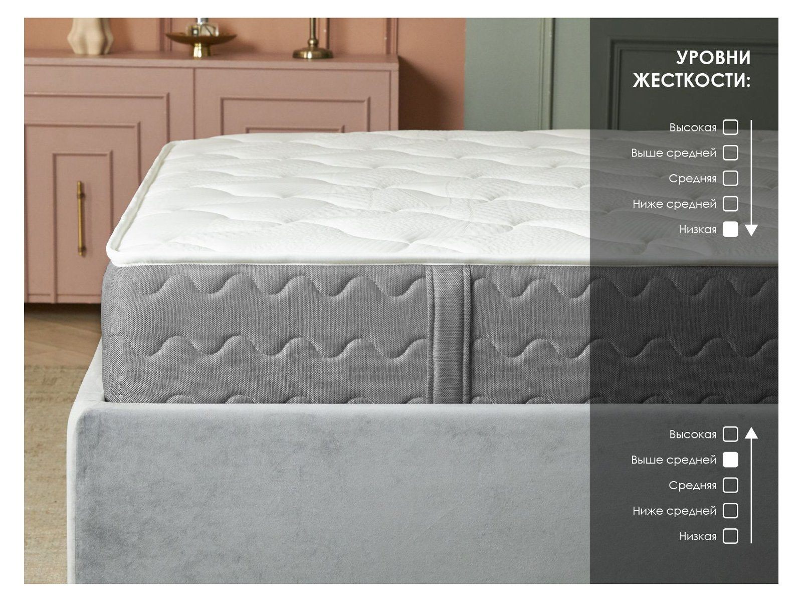 Двусторонний пружинный матрас ОК Мемо Хард с контрастными по мягкости поверхностями и эффектом памяти. Модель обладает ярко выраженной жёсткой стороной и адаптивной мягкой. Изделие подойдёт для тех, кто ещё не успел определиться в предпочтениях, а также понравится семьям, где партнёры любят разные по плотности спальные места. Переворачивая изделие, вы тем самым легко меняете жёсткость.