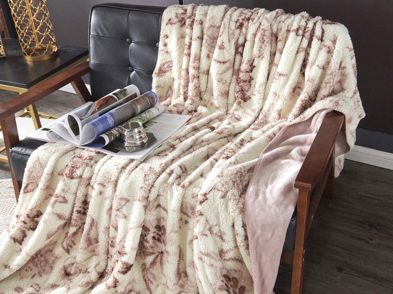 Плед двусторонний: с одной стороны однотонный, с другой - рисунок прованс.