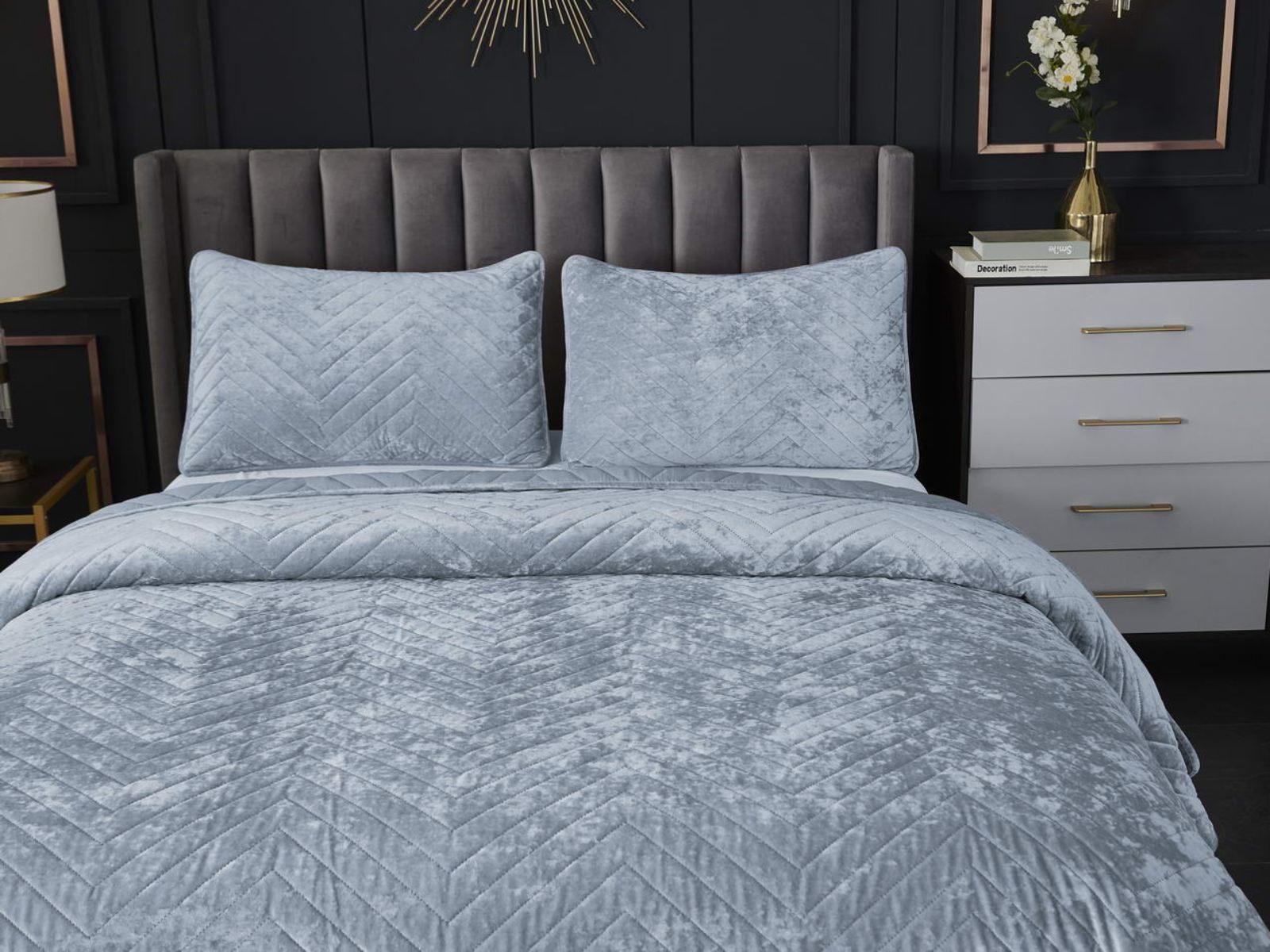Покрывала Фернанд выглядят как будто сошли с картин, изображающих королевские покои. Бархатную ткань начали изготавливать еще в Средние века, её использовали в оформлении дворцов и изготавливали плащи и головные уборы для знати. Теперь и вы можете прикоснуться к этой роскоши! Бархатная текстура приятная на ощупь, а из-за особого плетения ткани, игра света на ней выглядит благородно. Поэтому покрывало Фернанд создаст необычайно уютную атмосферу в вашей спальне. Цветовая гамма разнообразна и включает восемь благородных оттенков: капучино, бежевый, изумруд, горчичный, терракотовый, пепельная роза, серый, стоун. За покрывалом Фернанд легко ухаживать: стирка при температуре 30 градусов, вручную или в машинке. Важно хорошо просушить изделие! При правильном уходе вещь прослужит долгие годы не потеряв форму и цвет.