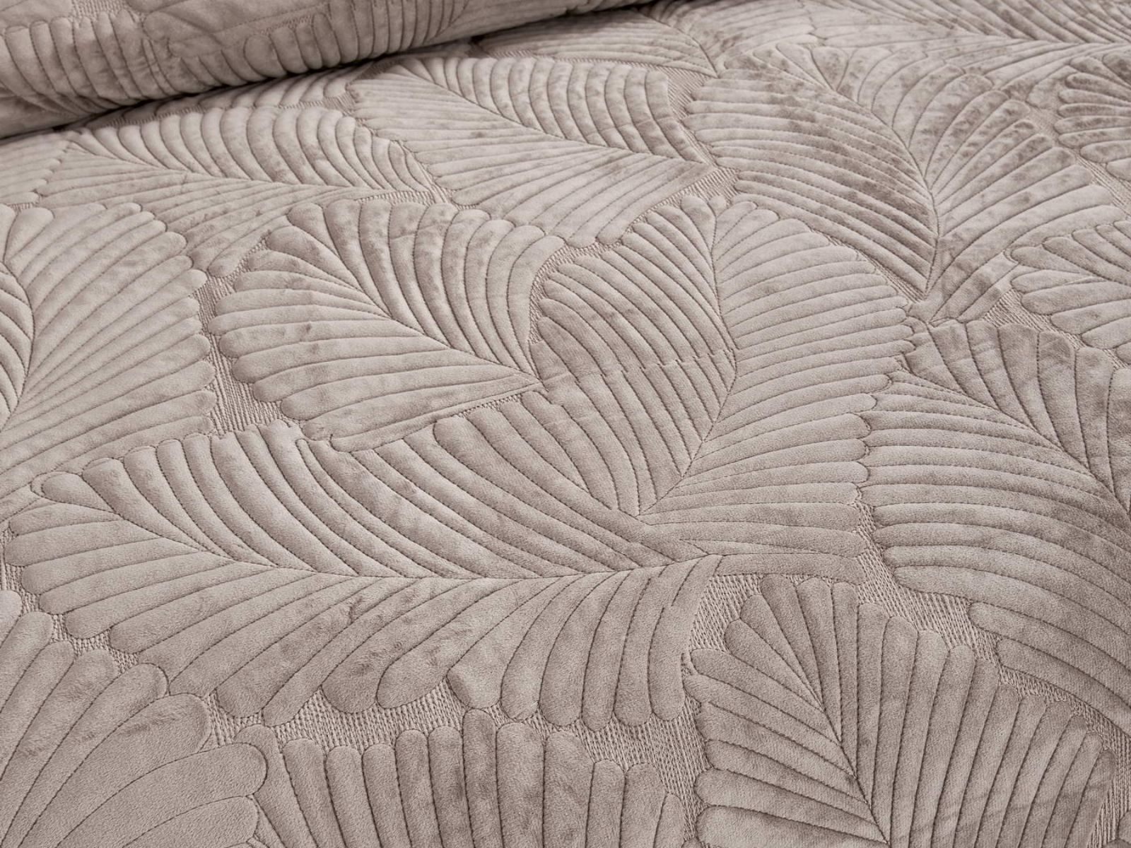 На создание велюрового покрывала Ноэль наших дизайнеров вдохновила ночь в середине лета, когда на раскаленную от жары землю спускается долгожданная прохлада. Роскошная вышивка в виде пальмовых листьев будет напоминать о тени, которую отбрасывают деревья.