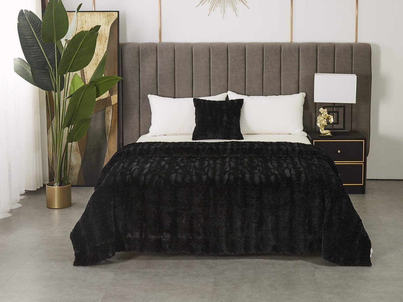 Пледы и наволочки Теодор продаются отдельно, а это расширяет простор для творчества. Вы можете подобрать к белому пледу наволочки цвета мокко или розовые, а к черному – белые или бежевые. Не ограничивайте свою фантазию.