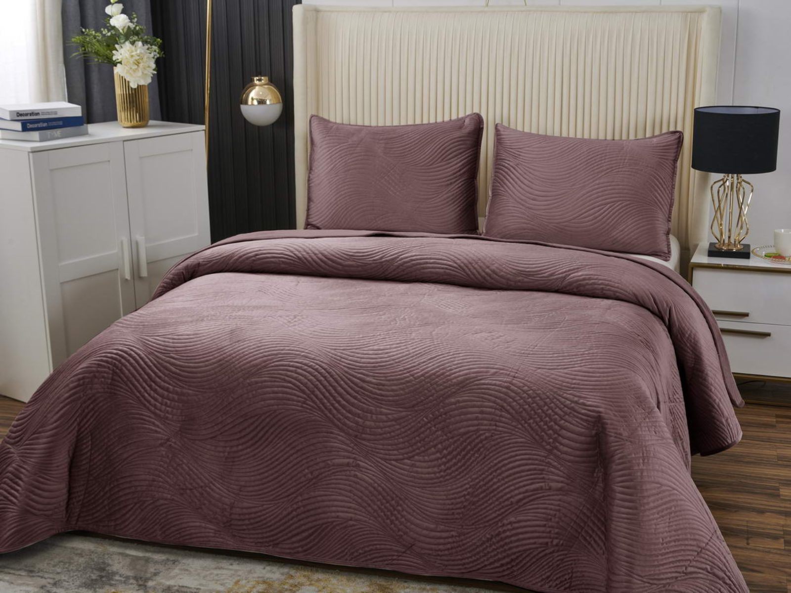 Традиционно в японском саду камней линии на песке символизируют отсутствие хаоса и спокойствие. Такой плавный узор напоминает размеренные потоки воды, которые оказывают на психику благоприятный эффект. Изящное покрывало Жизель с рисунком в виде подобных линий поможет обрести умиротворение, ведь в современном мире так важно уметь привести мысли в порядок. Помимо положительного воздействия на нервную систему, рисунок в виде волны придаст изысканности и утонченности Вашему интерьеру.