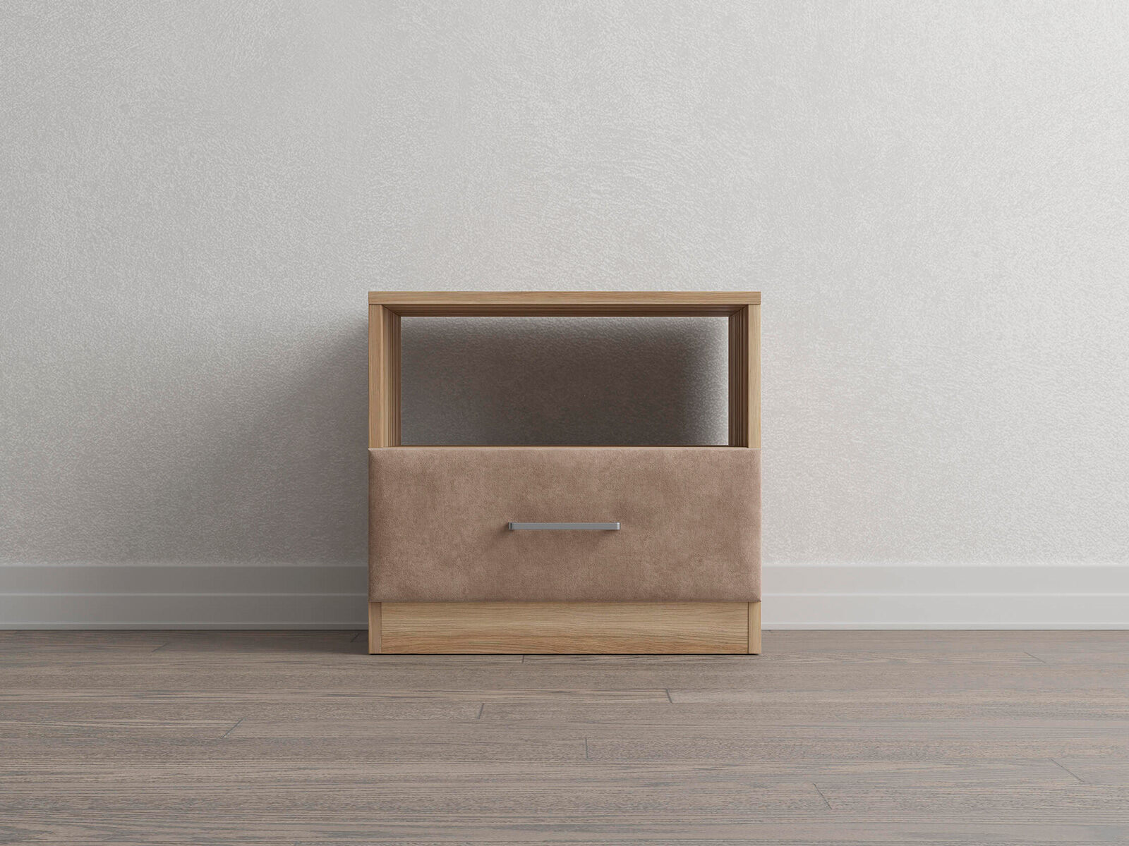 Элегантная комбинированная тумба, сочетающая в себе лаконичность ЛДСП и уют мягких фасадов ящиков, обтянутых тканью. Конструкция тумбы предусматривает открытую нишу для мелочей и вместительный выдвижной ящик с направляющими скрытого монтажа и доводчиками. Корпус из ЛДСП гарантирует долговечность и устойчивость к механическим повреждениям, а мягкие фасады в ткани и изящные металлические ручки добавят уют. Большое разнообразие текстур и цветовых решений для гармоничной интеграции в любой интерьер.
